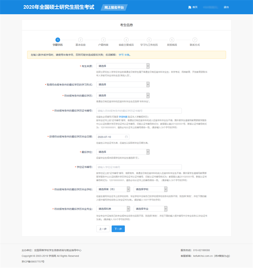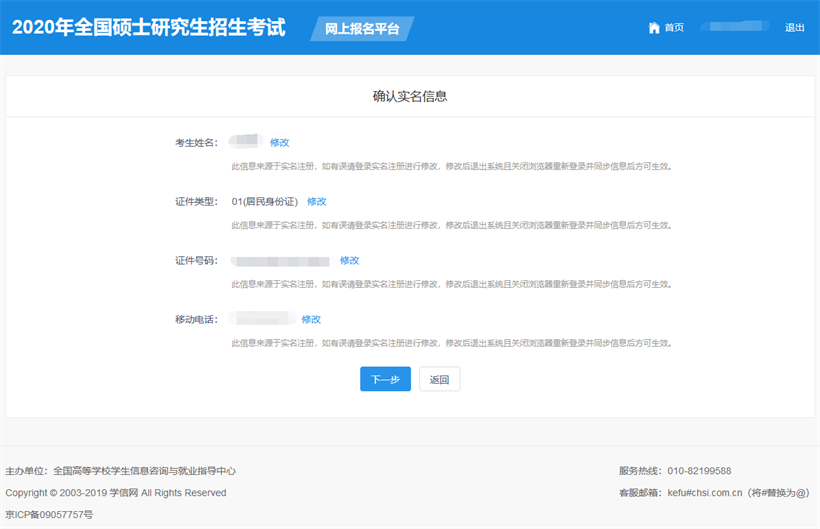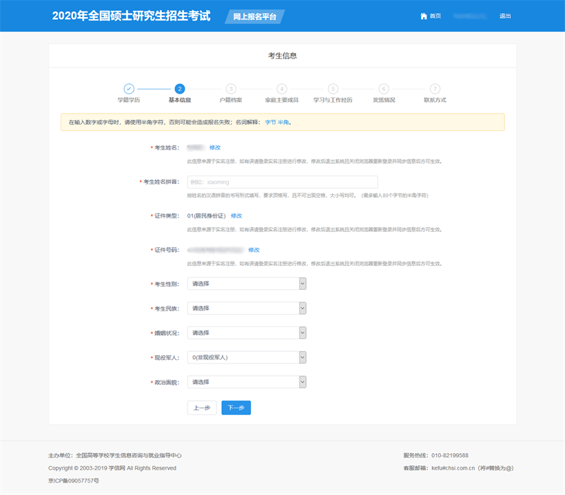 1) 请考生自行检查填写信息,确保填写的信息与实际证件完全一致;