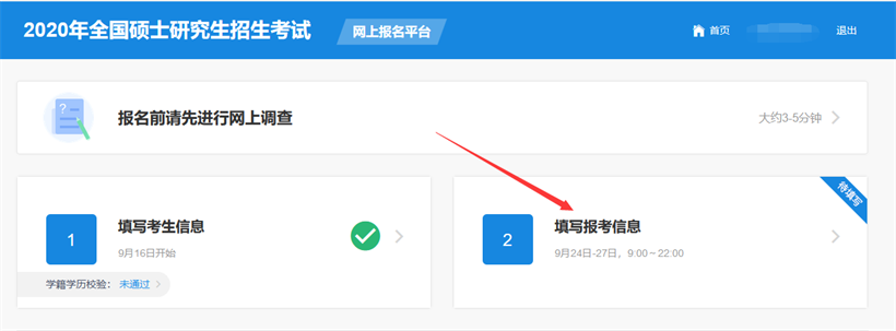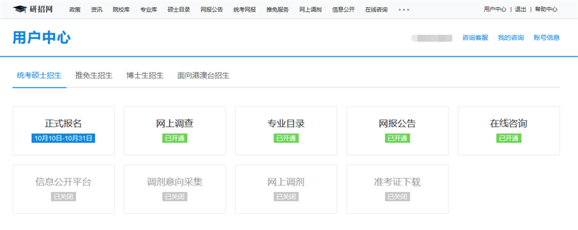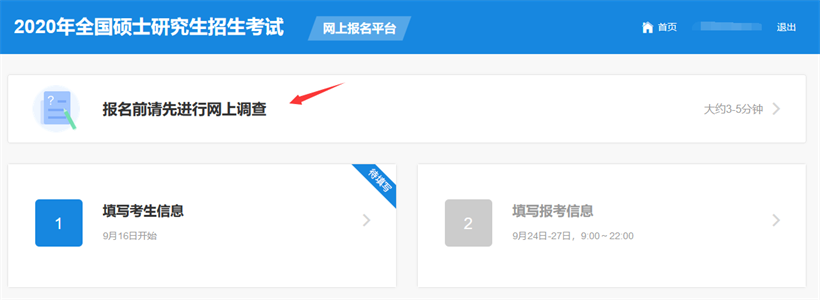 3、登录后请先仔细阅读《网上调查》《专业目录》及《网报公告》等信息,如有问题可使用“在线咨询”功能;阅读完成后请点击“正式报名”。