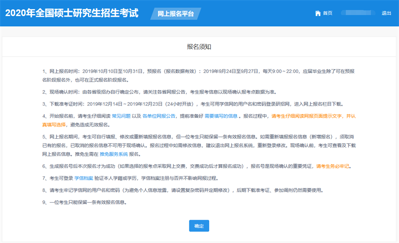 【报名时间段】2019年10月10日至31日,每天9:00-22:00(报名期间考生可自行修改网报信息或重新填写报名信息,但一位考生只能保留一条有效报名信息。逾期不再补报,也不得再修改报名信息。)