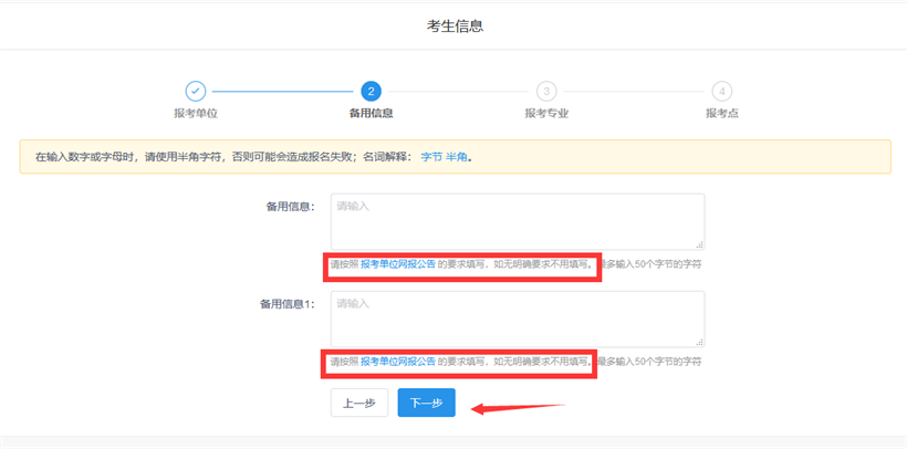18、备用信息:请先查阅页面上相应的公告,无明确要求不用填写。
