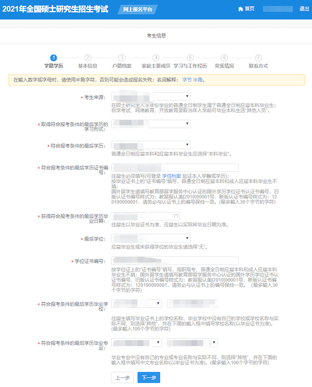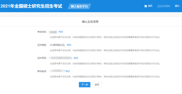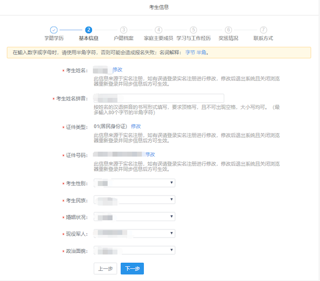 1) 请考生自行检查填写信息,确保填写的信息与实际证件完全一致;