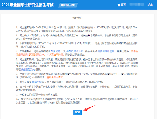 【报名时间段】2020年10月10日至31日,每天9:00-22:00(报名期间考生可自行修改网报信息或重新填写报名信息,但一位考生只能保留一条有效报名信息。逾期不再补报,也不得再修改报名信息。)