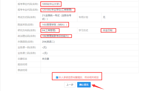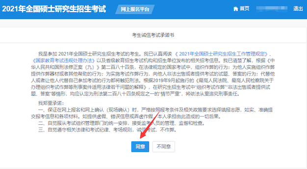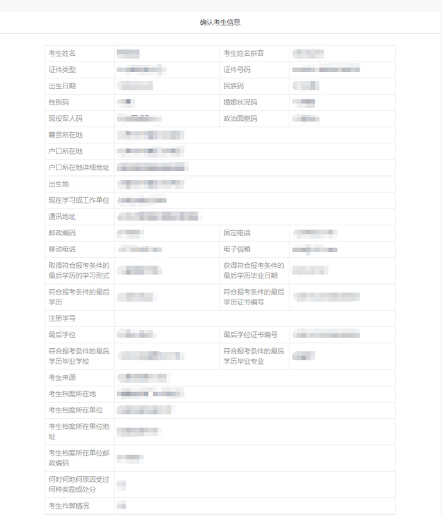21、 最后确认报名信息:请按教育部、本人所在地省级教育招生考试管理机构、报考点以及报考招生单位的网上公告要求报名,凡不按公告要求报名、网报信息误填、错填或填报虚假信息而造成不能考试或复试的,后果由考生本人承担。报考信息一旦提交不可修改。