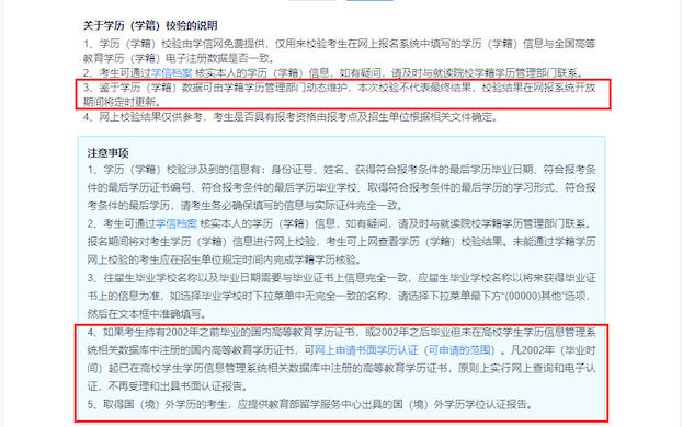 2) 校验结果在网报系统开放期间将定时更新,如确认信息填写无误,可于网报期间上网查看,或与原培养院校学籍学历管理部门联系;