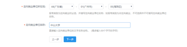 4) 定向就业单位信息按当前实际情况填写即可,如下示例: