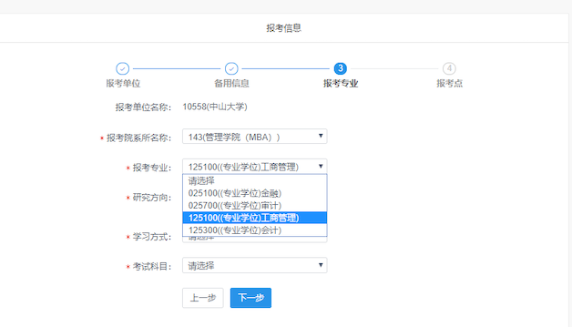 19、 选择报考专业:143(管理学院(MBA))。