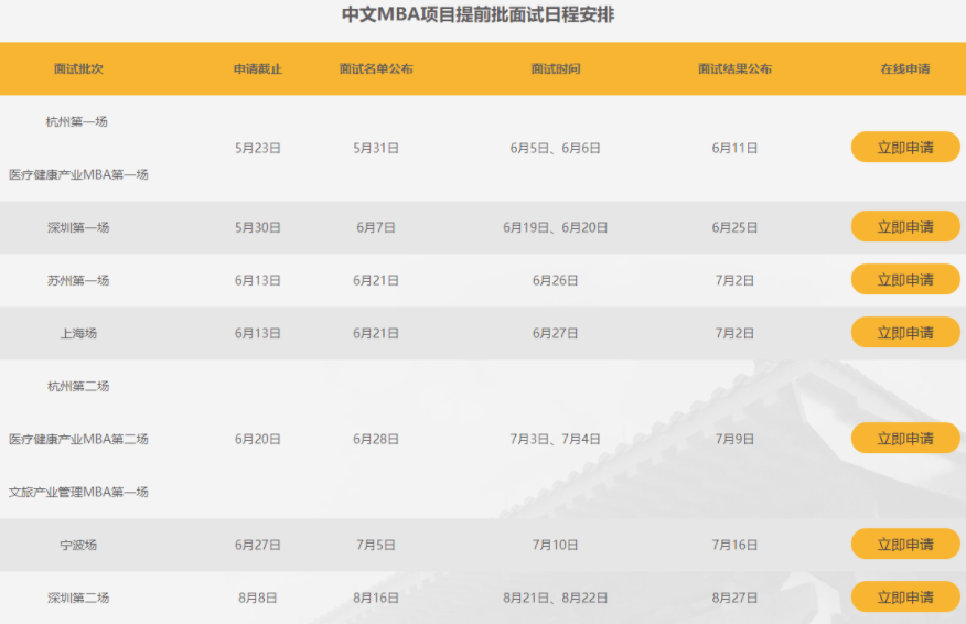 2022级浙江大学中文MBA提前面试各批次时间安排